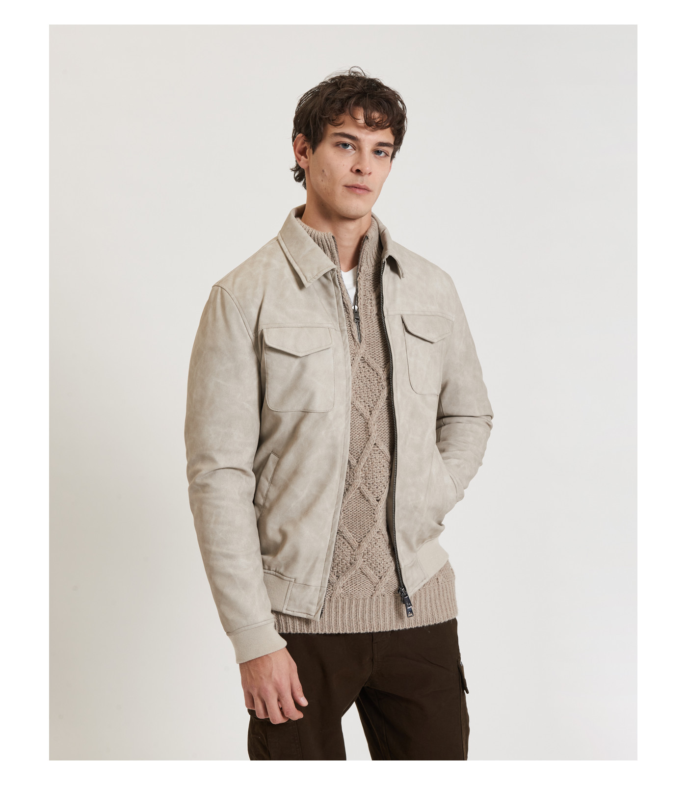 Bomber giacca in eco camoscio - beigeBomber giacca in eco camoscio – beige