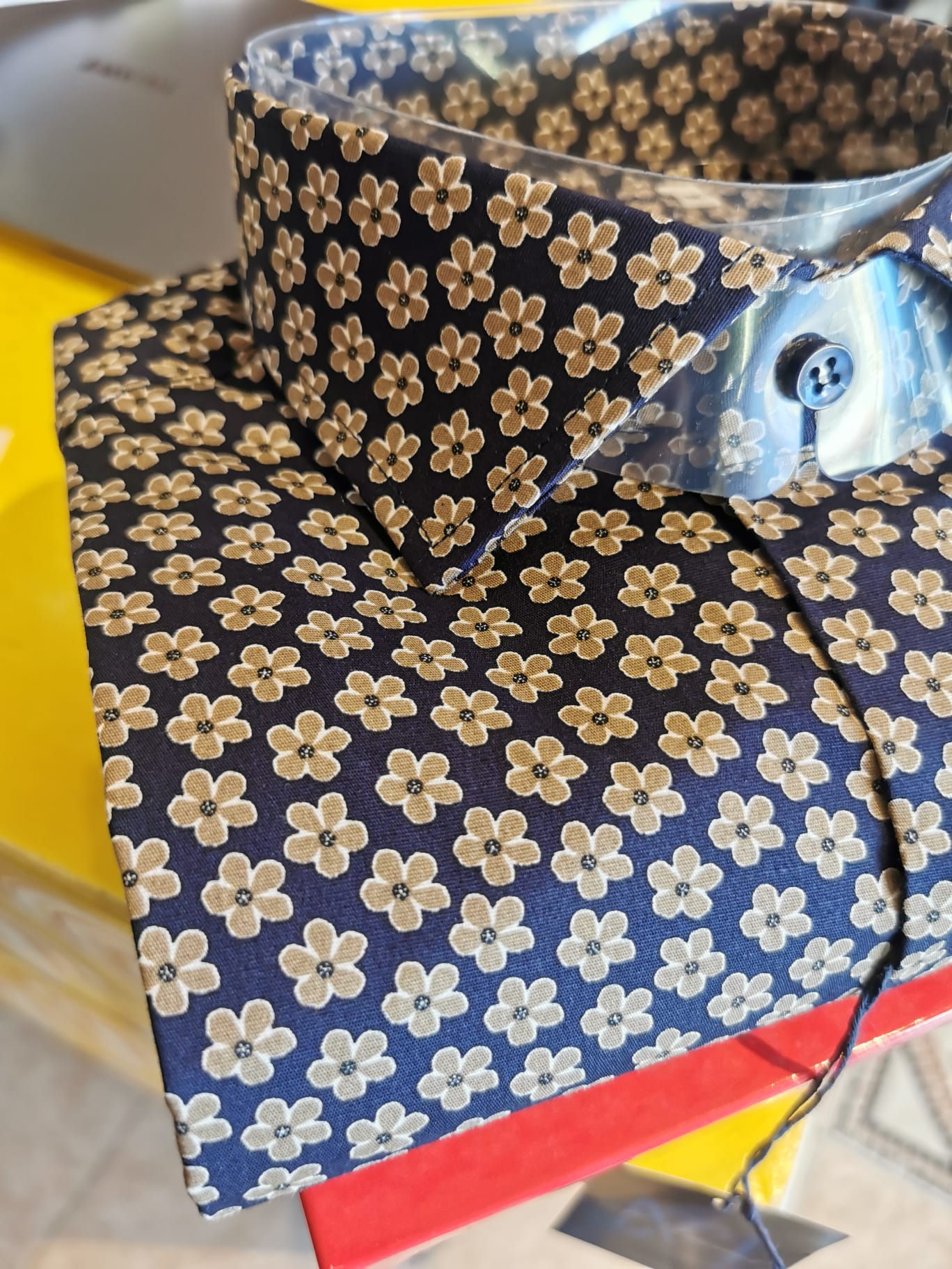 Questa camicia slim fit esprime un’eleganza italiana disinvolta. La leggera miscela di cotone elasticizzato garantisce comfort e traspirabilità, mentre il motivo moka aggiunge un tocco di personalità adatto sia al lavoro che al tempo libero. Orgogliosamente prodotta in Italia.