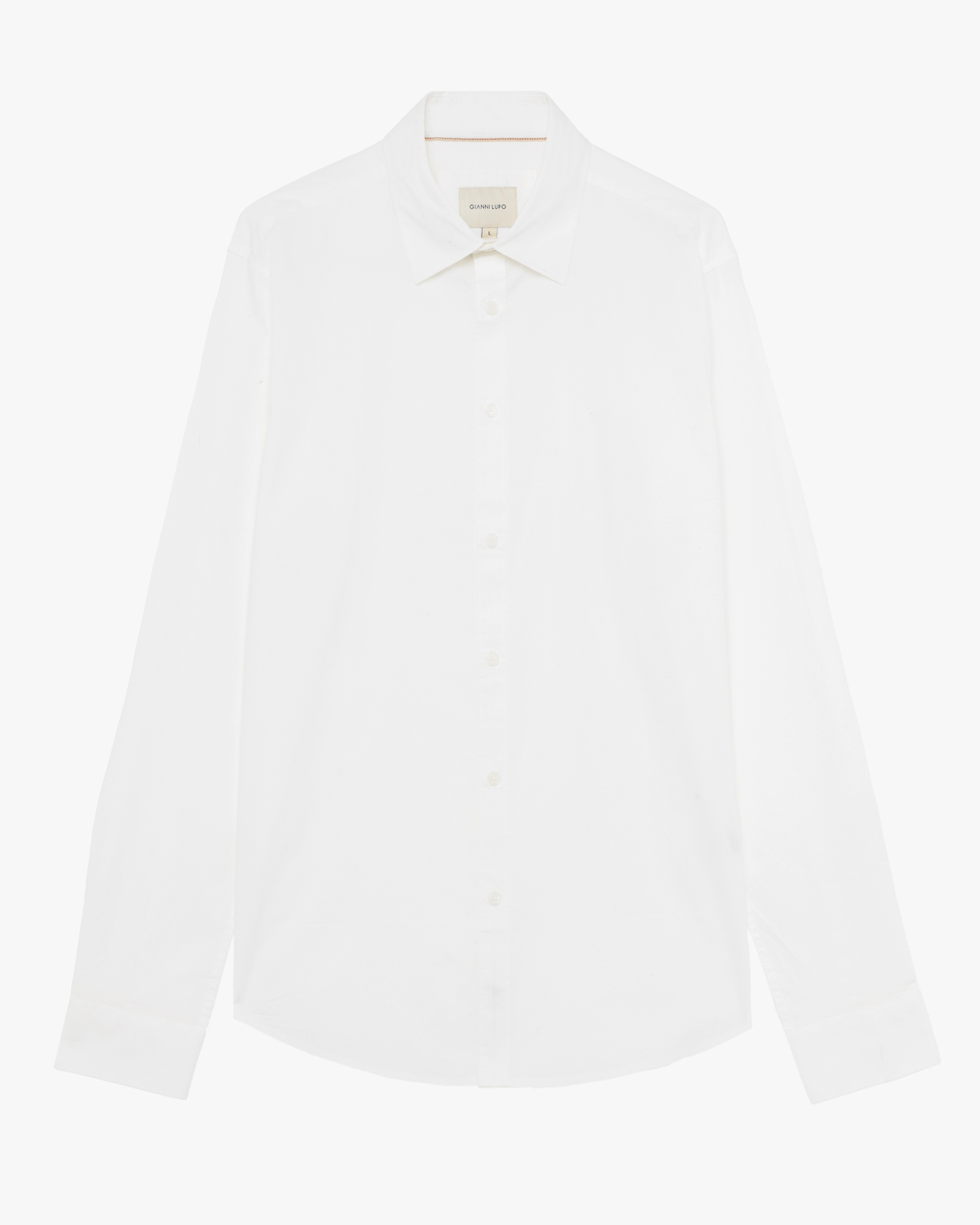 Progettata per comfort e raffinatezza, questa camicia slim fit con colletto classico è realizzata in cotone elasticizzato per una vestibilità che si adatta ai movimenti. La finitura liscia e il taglio preciso la rendono un capo versatile, adatto sia a occasioni formali che informali.