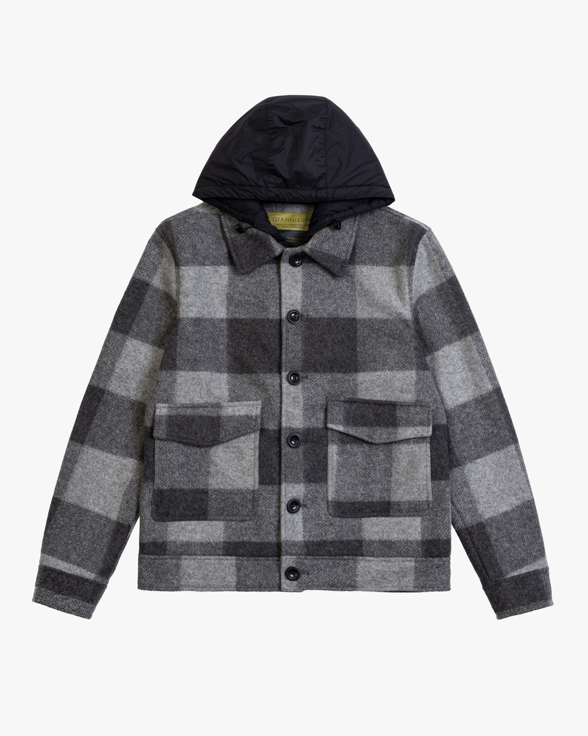 Questa giacca a quadri unisce struttura e comfort. Dotata di cappuccio rimovibile, chiusura frontale con bottoni e diverse tasche funzionali, è completamente foderata per offrire calore e versatilità.