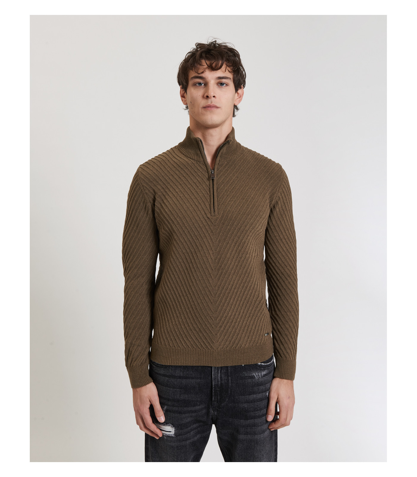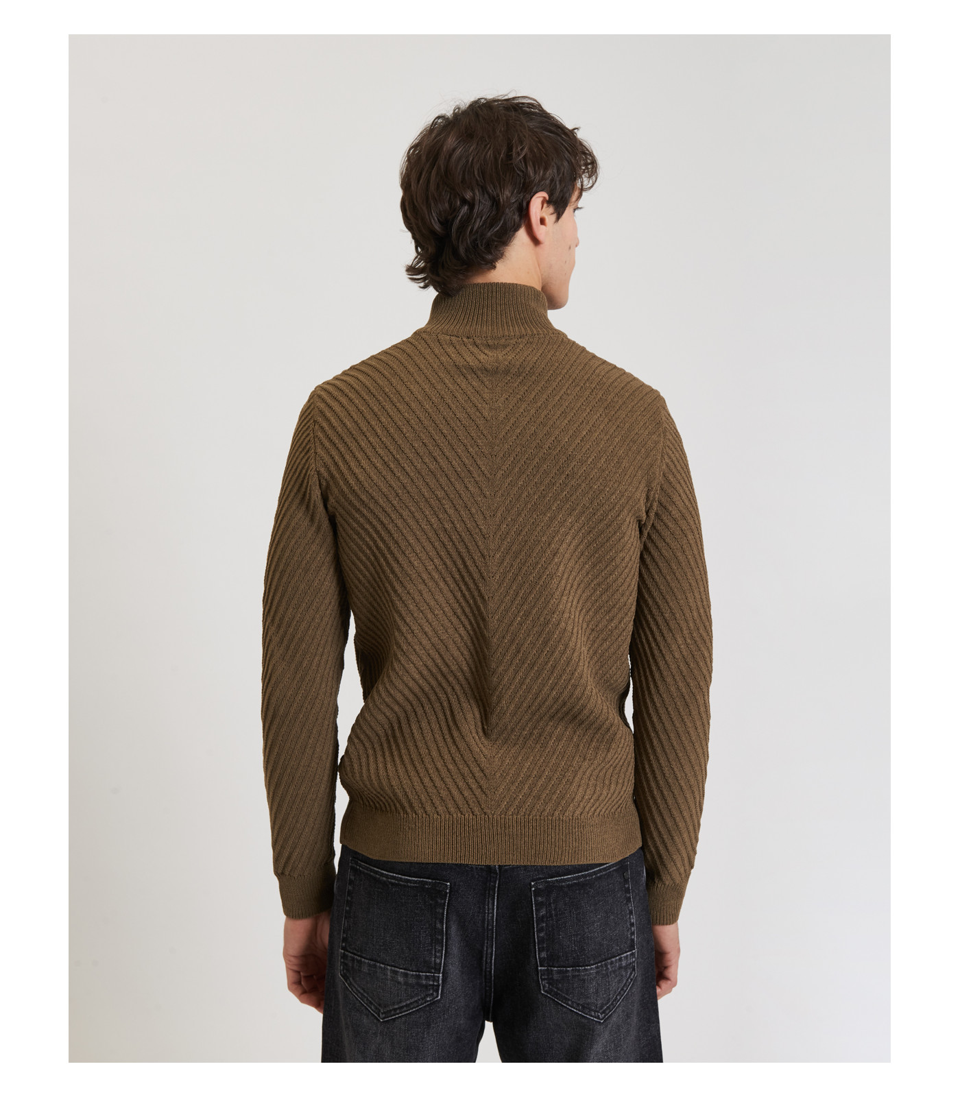 Essenziale e moderno, questo maglione a coste diagonali con collo a zip offre uno stile sportivo ma elegante. Il tessuto antipiega e ad asciugatura rapida lo rende pratico e raffinato al tempo stesso.