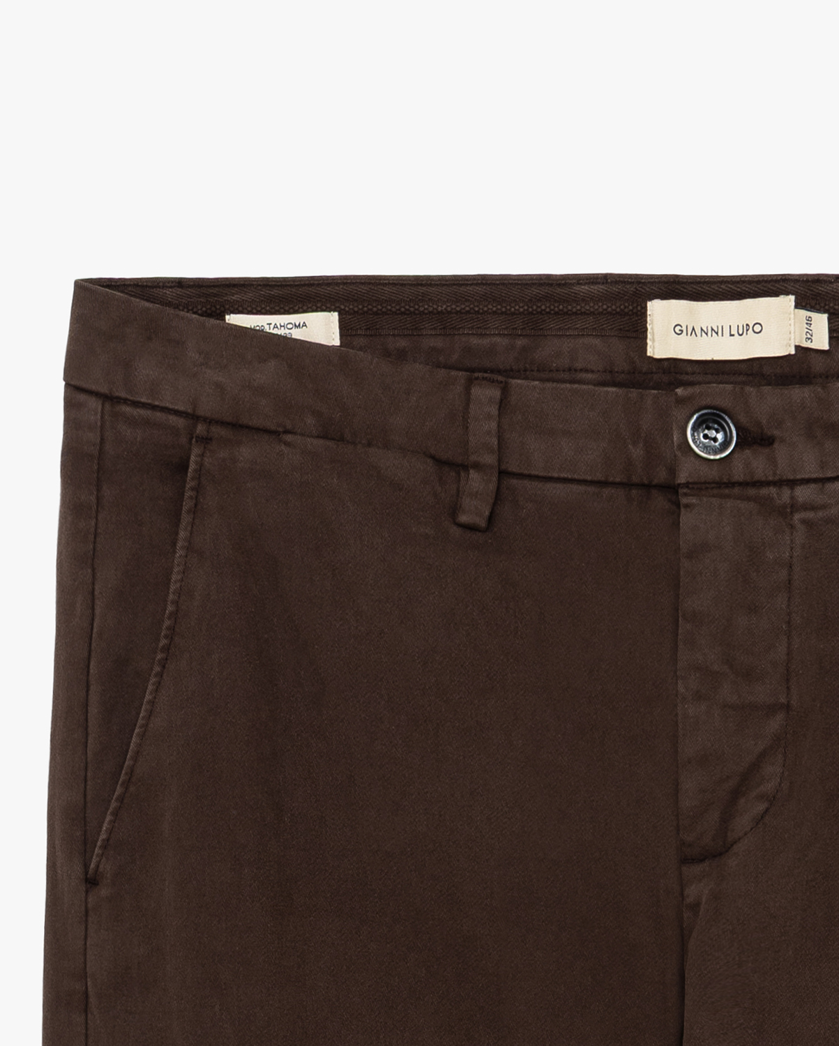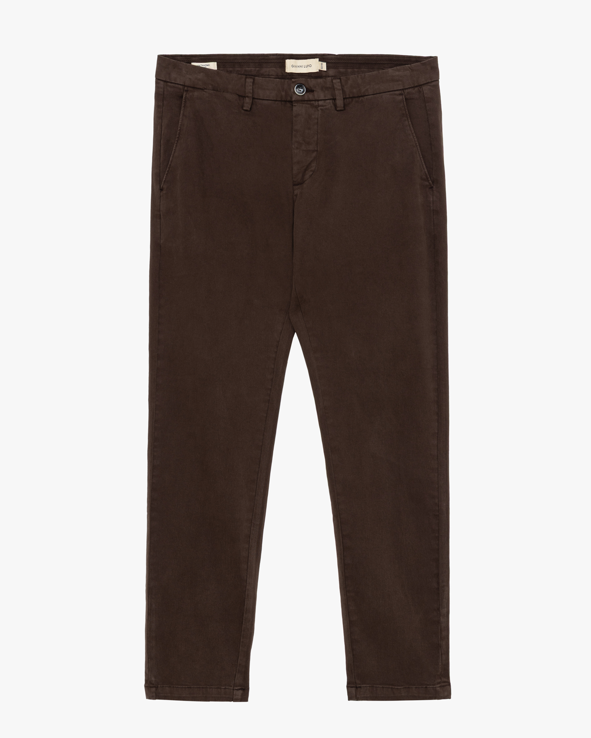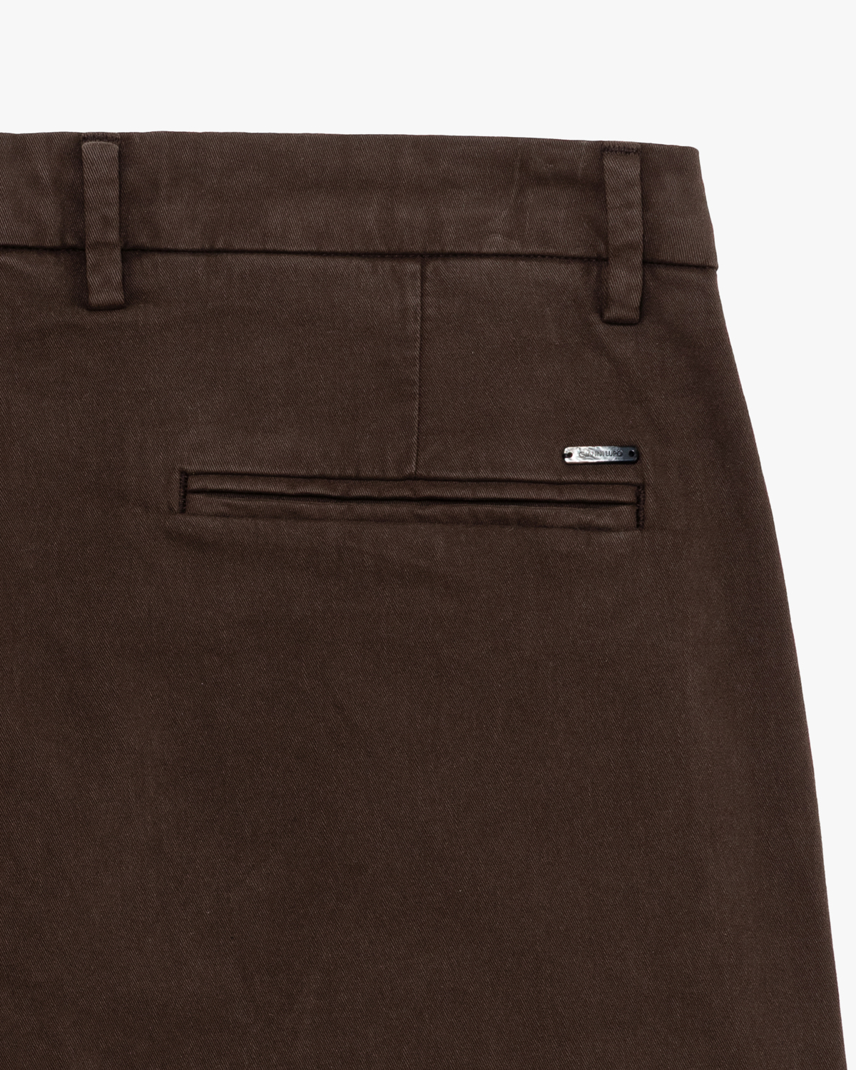 Realizzati per il comfort moderno, questi pantaloni slim fit presentano tasche laterali oblique, chiusura con zip e dettagli posteriori rifiniti. Il tessuto in cotone elasticizzato garantisce libertà di movimento e una vestibilità impeccabile, perfetti per l’ufficio o le serate fuori.